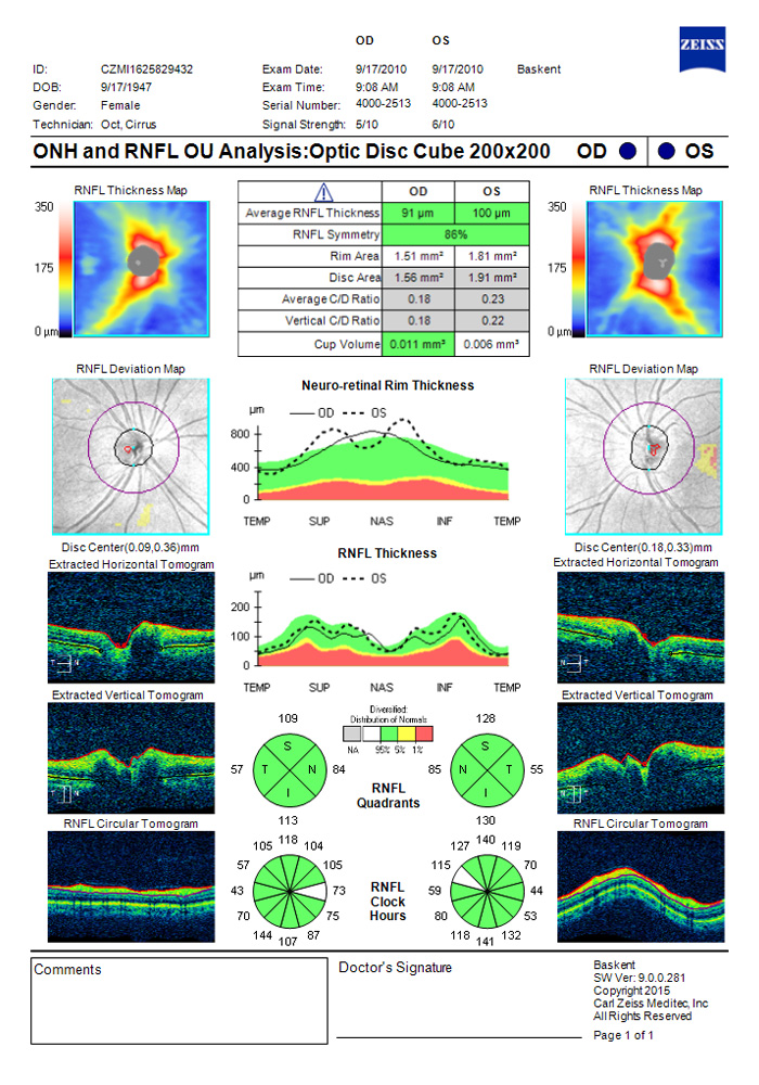 Glokomun tanısı görme siniri tomografisi OCT sayesinde günümüzde hiçbir zaman olmadığı kadar erken konulabilmektedir. Görme alanı hasarının oluşması görme sinirinin yaklaşık %50’si öldükten sonra oluştuğu için görme alanı hasar oluştuktan sonra konulacak tanı aslında geç kalınmış bir tanıdır. OCT sayesinde biz görme sinirindeki %1-2 kayıpları, özellikle de hastayı belli aralıklarla aynı cihazda takip edebilirsek saptayabilmekteyiz.